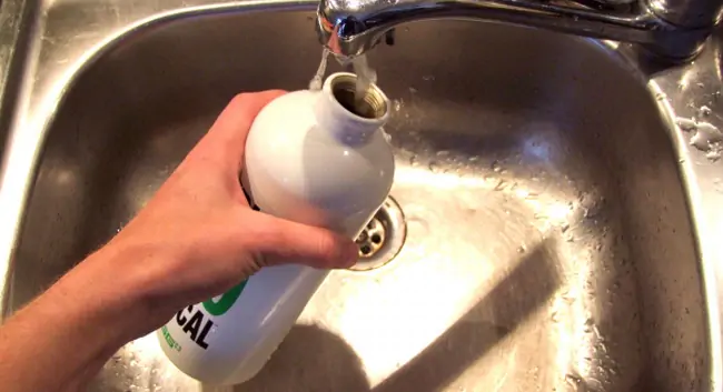 Garder les gourdes à coté de l’évier. Après avoir utilisé votre gourde dans la journée, un petit coup d’eau très chaude dans la gourde lors de la vaisselle et vous n’aurez pas besoin de la récurer trop souvent.